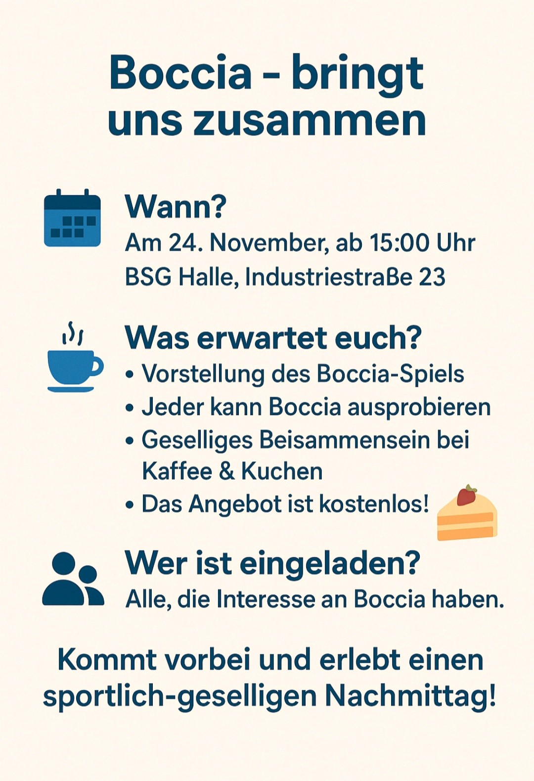 Ein weiteres Highlight steht bereits bevor: Am 19.Juli 2025 findet ein Pokalturnier in der Vesterthalle in Ahaus statt. Interessierte sind herzlich eingeladen, das Turnier live zu verfolgen und sich vor Ort ein Bild vom Boccia-Sport zu machen.